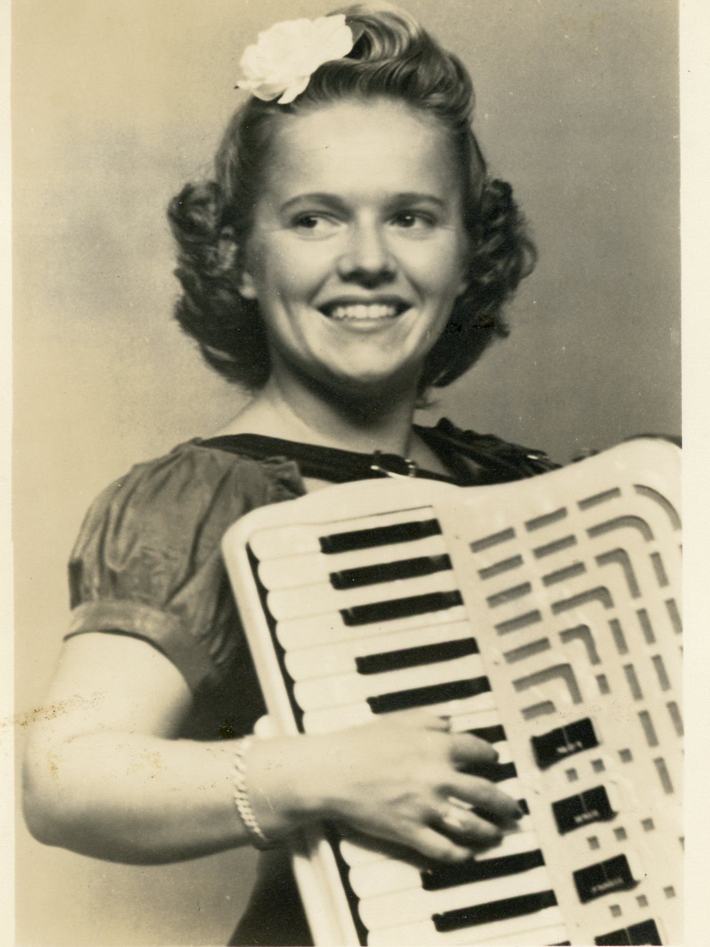 She took her accordion everywhere she traveled just in case there was a chance to entertain. In her car, Esther had blocks on her pedals so her feet could reach them.