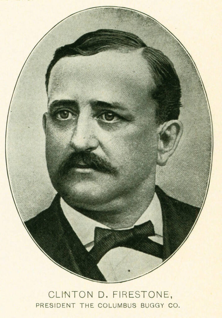Oscar & George Peters were leather workers in 1865 who expanded into buggy manufacturing but soon found themselves in debt. The Peters were then introduced to Clinton Firestone who was the son-in-law of their pastor. Firestone agreed to finance the venture with $5000 and the Iron Buggy Co was born, situated at 180 N High St.